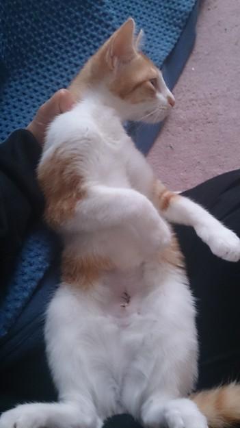 となり1週間延期。そして、手術は成功して初日は小さいし相当疲れたのかご飯も食べず寝ているので(去勢、避妊手術をしてこんなにぐったりする子を見たのはナナがはじめてでした。我が家のナナ以外の子は手術後は我が家帰れば安心したのかご飯をバクバク食べたので)この写真は手術後5日くらいしてから撮りました。