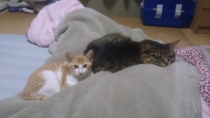 我が家の2代目ビッグキャット(初代はチャチャです)もん太並ぶとこんなに差があります。