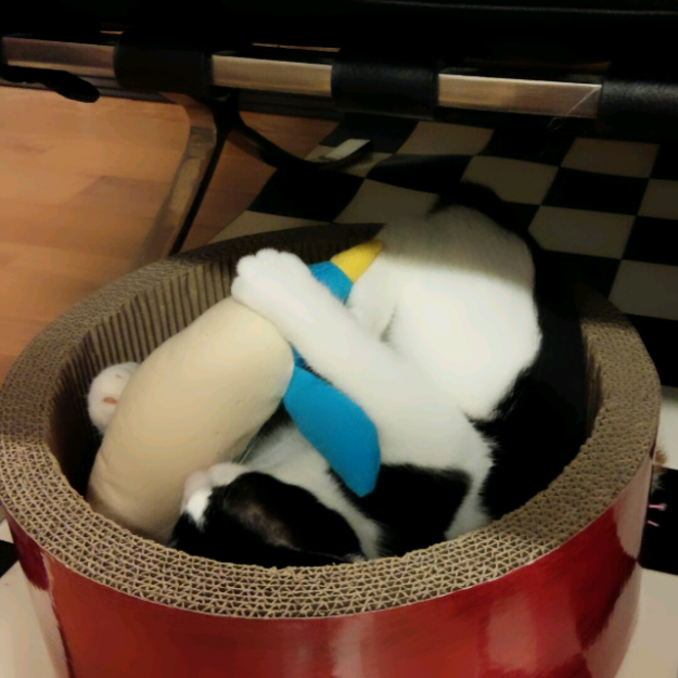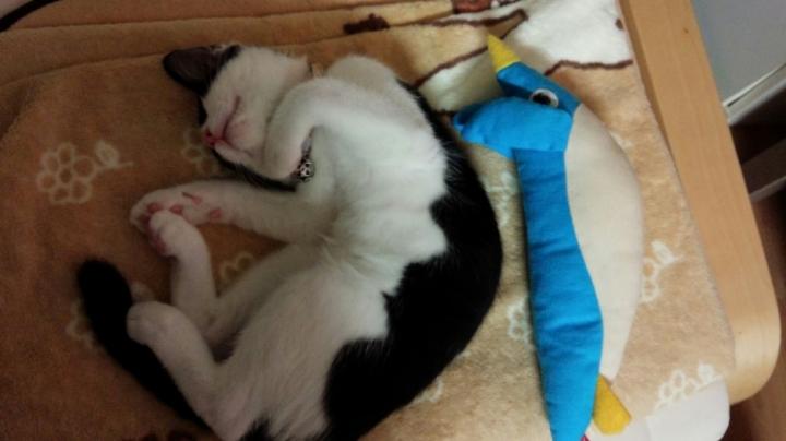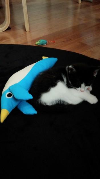 破れても繕われて、まだまだ現役で蹴られ続けています(笑)
