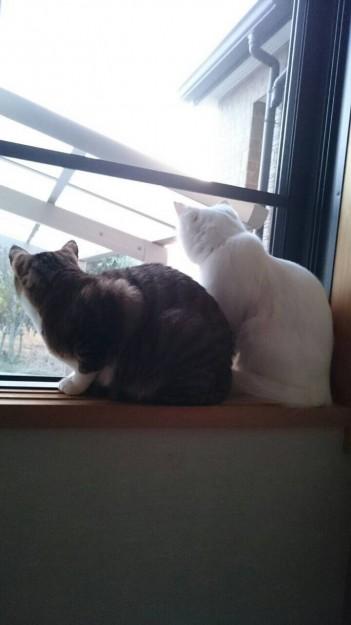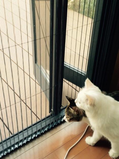 最近、暑さを感じるくらい一気に暖かくなったので、窓を開けてるのですが、ニャンズが揃ってあっちの窓、こっちの窓と忙しそうに見守ってます。