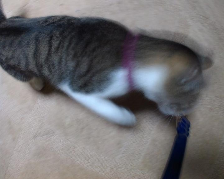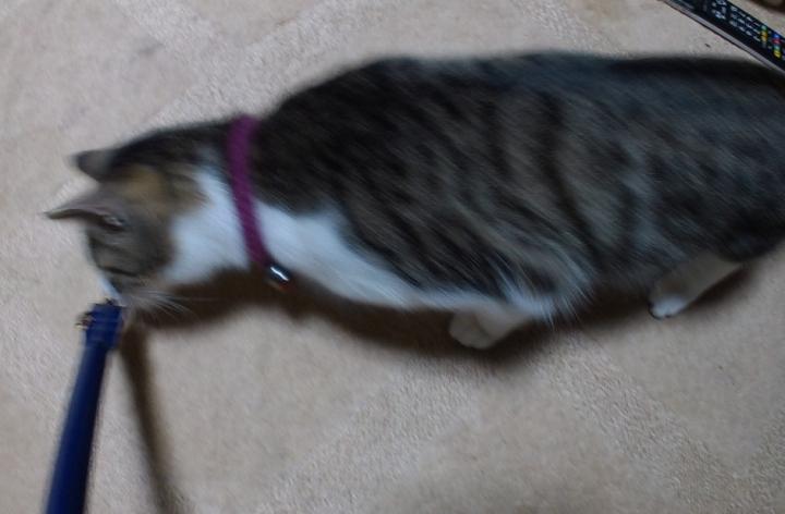 七七保が、ひもで遊んでいる様子。それにしても、よく遊ぶなあ…。