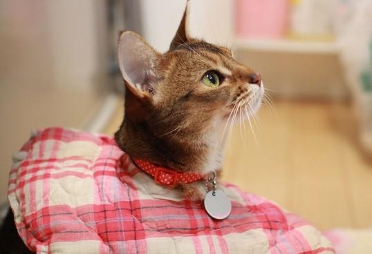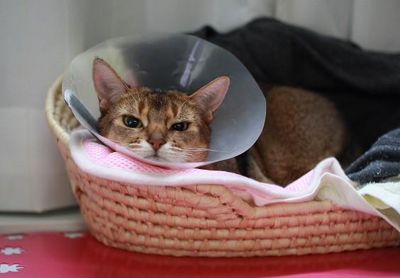 今さっき撮影した写真ですが、お腹舐め防止の布製のソフトカラーから