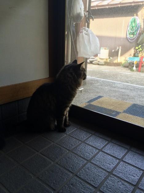 玄関から外を眺めてる虎太郎でした。