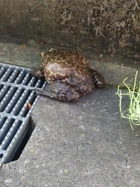 ウシガエルさん、華麗に空中を舞い、ポッシャン