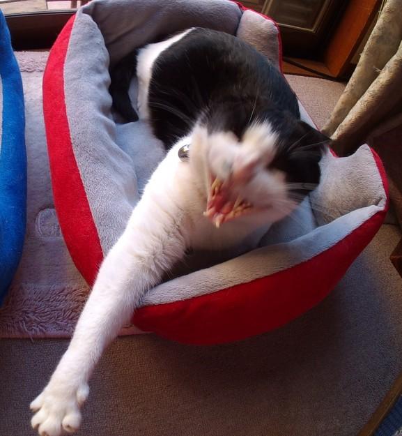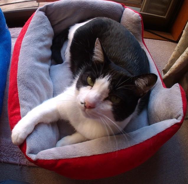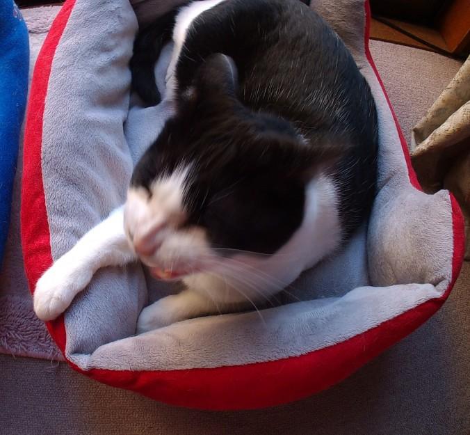 七七保は、もう起きたのに、ハチ君はお昼すんでも、まだペットベットの中。