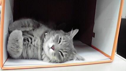 この箱で寝れるなんて小さかったなー。(アス○ルのA3用紙の箱)