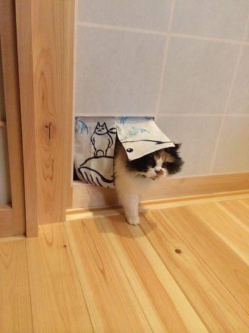 ところで、わが家は猫ドア派なんですが、猫のれんが流行ってるらしいです。