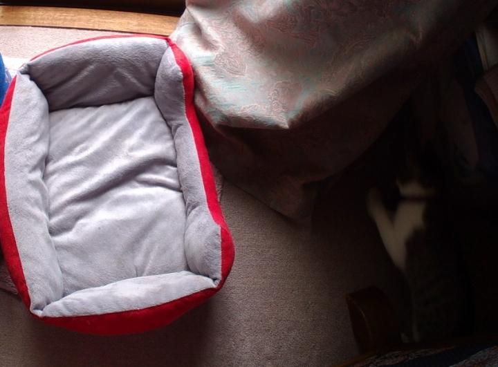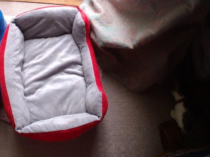 さて、食後、いつものようにペットベッドに入っていたハチ君ですが…。