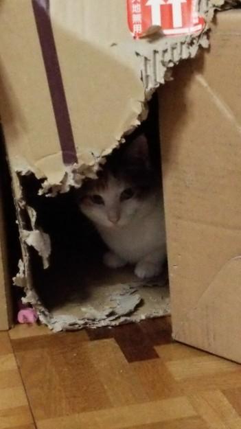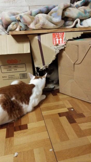 茶太郎が諦めたら、出てきて餌さを食べてます。
