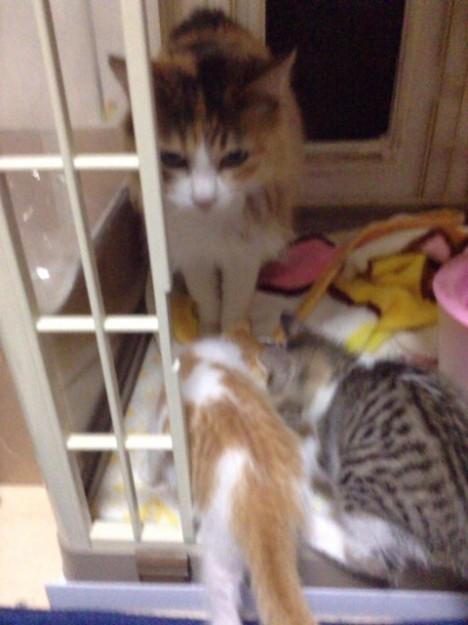 子猫たちとくっちーの関係は、今、こんな感じです。