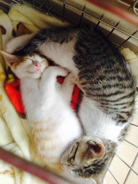 遊び疲れたら、いきなり電池が切れたように、2匹揃って眠ります。
