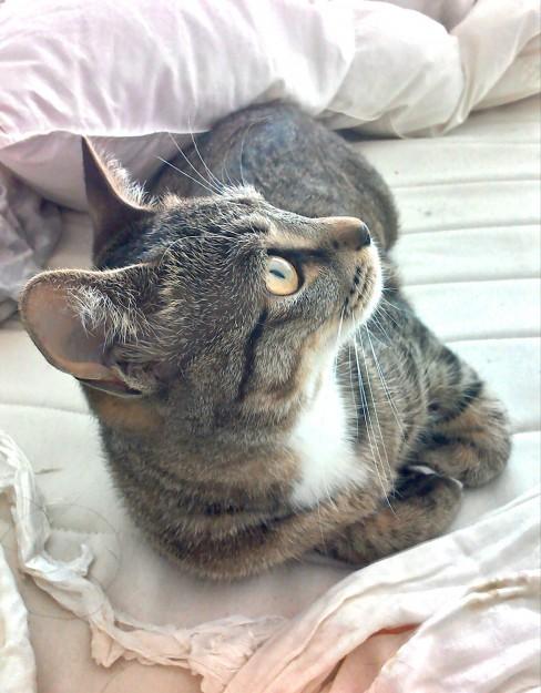 パソコンの上に乗って換気扇の音に耳をすます 呼んだら いいお顔!
