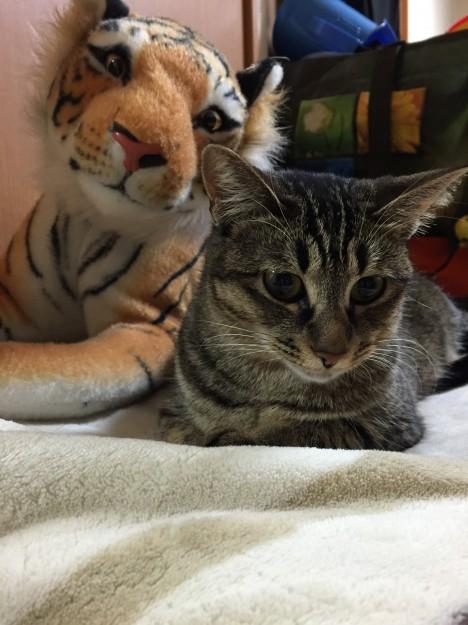 最近ゲーセンでゲットした虎のぬいぐるみ。