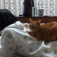 青い海、青い空、水着のお姉ちゃんの膝に猫ってかんじでした。