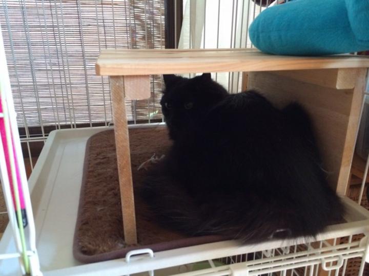 獅子丸殿はケージに入れる前から初めて来た私の姉を見てパニックになり、落ち着いても狭いところに入ったまま現実逃避