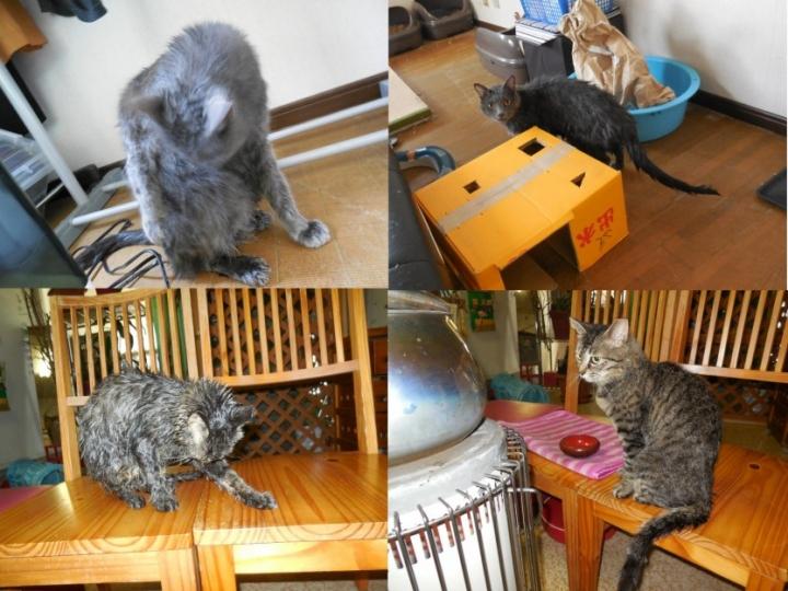 オハナは逃げようとして、お風呂にダイブ・・・ちなみにオハナが一番にして