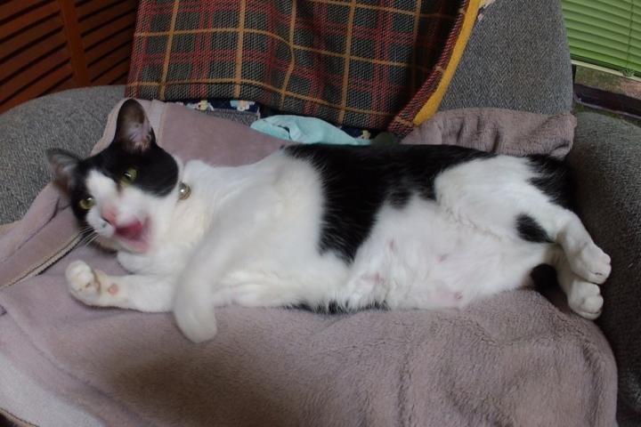 昨日に引き続き、部屋の隅の椅子が、お気に入りになっているハチ君。