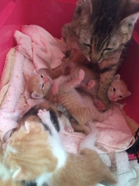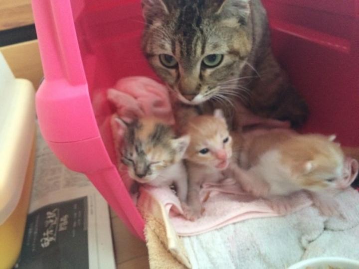 ママと子猫一匹は飼う予定、あとの4匹はもうちょっと大きくなったら私同様こちらにお世話になって里親さんを募集するみたいです!