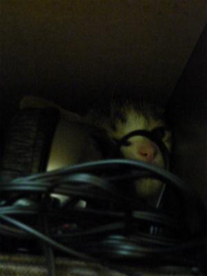 奥に仕舞ってある、ヘッドホンの影にいて見えなかったわ。