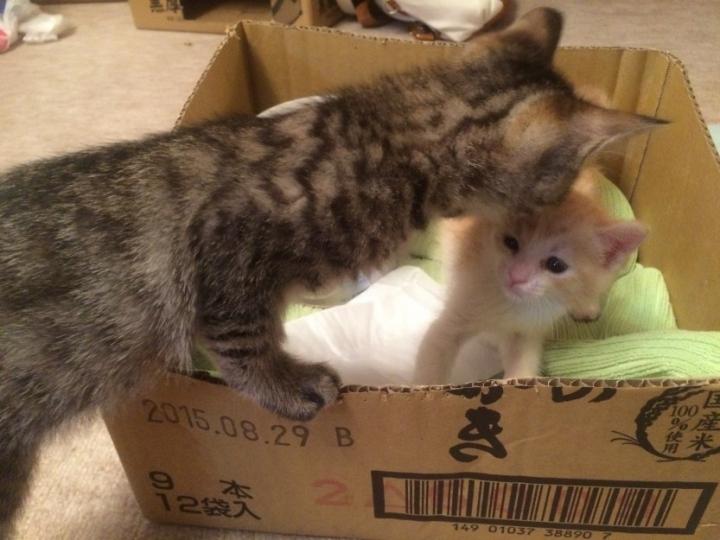 後ろにあるのは手作り簡易ダンボール猫ハウスwwクオリティ低すぎだし、あんま遊ばないしww