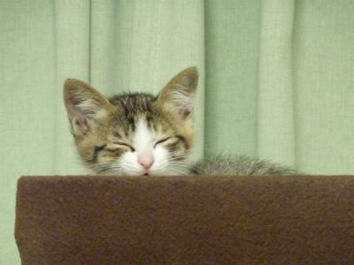 踏み台代わりに置いた段ボールを使わず飛び乗る。
