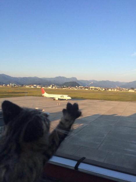 搭乗者待合室はガラス越しなので声が届かず、口パクとケイタイの画面を
