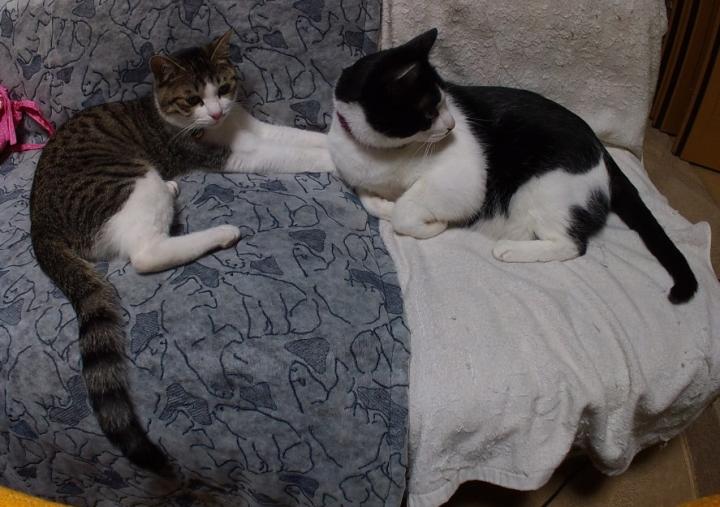 ちょっとだけ並んで寝ていましたが、すぐ離れて、別々になるふたりでした。