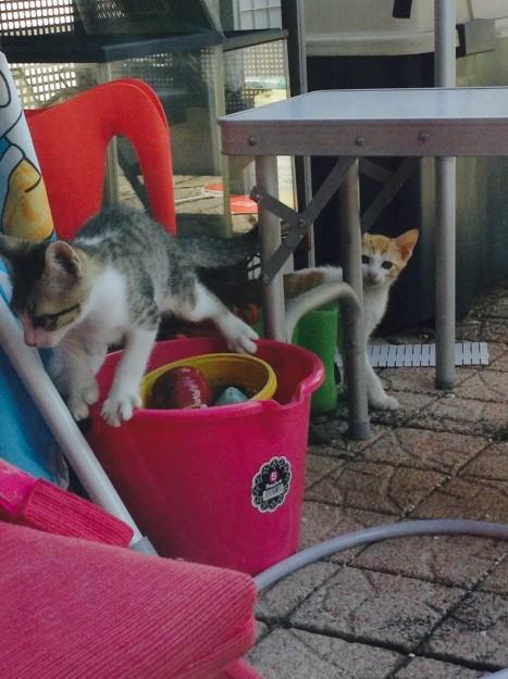 さすがに子猫たちは「!?」って感じで、最初は毛を逆立てていましたが、今は慣れて、一緒に遊ぶまでになりました。