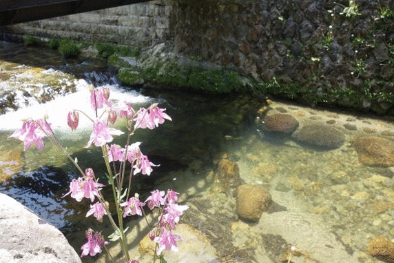 ず~~と進んでいくと温泉街の突き当りに雪解け水が滝となって勢いよく流れる