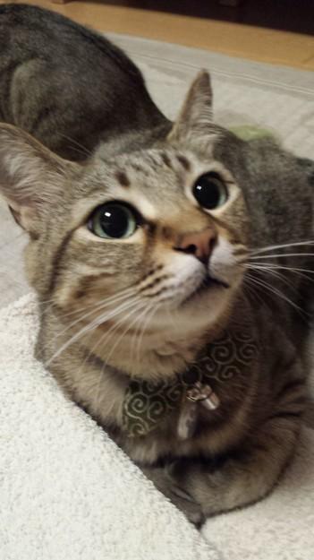 ワタシたちのゴハンの時は毎回ここに陣取るので、興味はあるんだと思います。