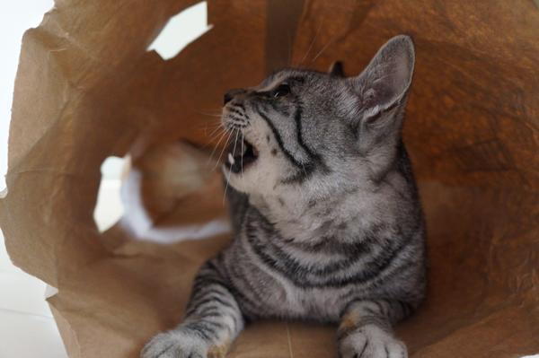 それの外包装用の大きな紙袋にいくつか穴を開けてみる