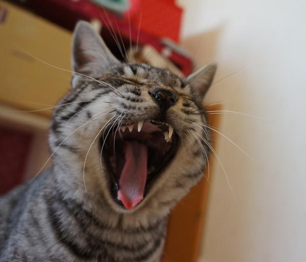 ドアの前でくるにゃあんくるにゃあんと鳴いてお出迎えをしてくれる銀猫氏