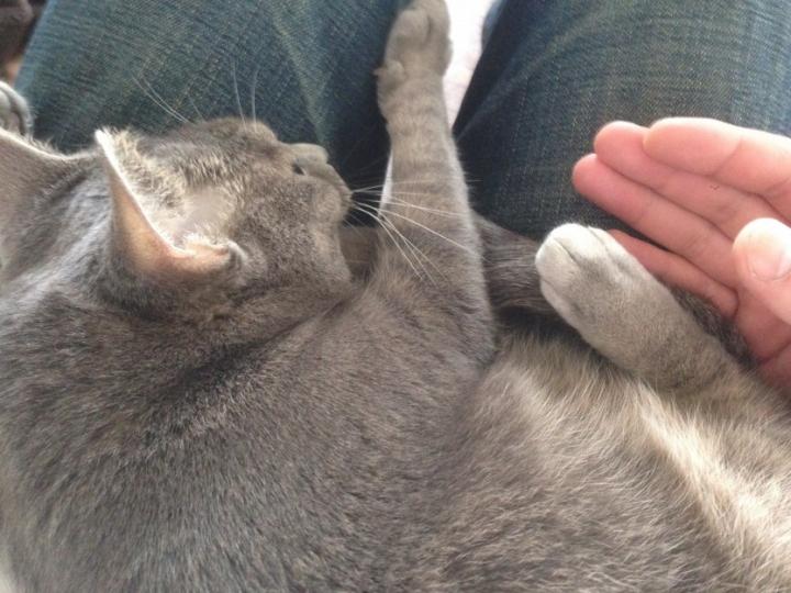 ②ゴロゴロ言いながら、お腹をたくさん触ら してくれる。