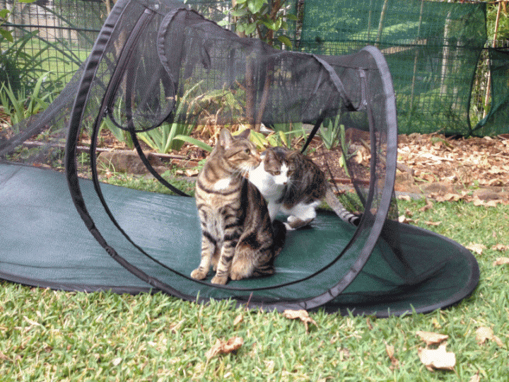 『にゃんずがお外に出たいって! お外で遊ぶよ!』
