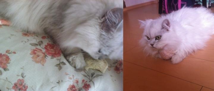 ミィちゃんが先に食べ終り銀ちゃんの横取りしようとしてたので