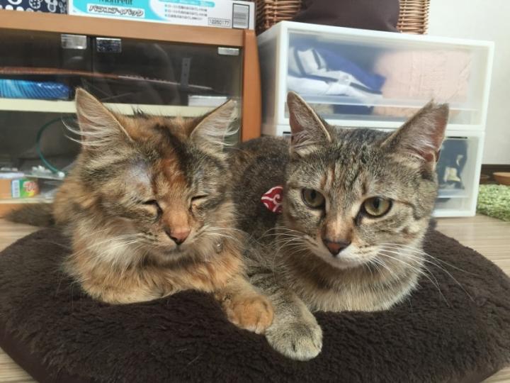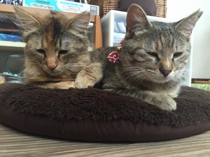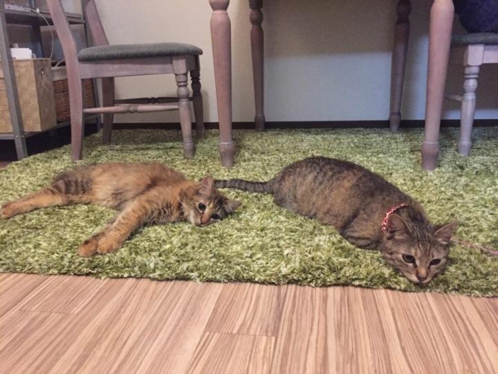 いつも同じような格好でゴロゴロしている仲良し姉妹です(´-`).。oO(夜中の大運動会はなんとかならないかなー。
