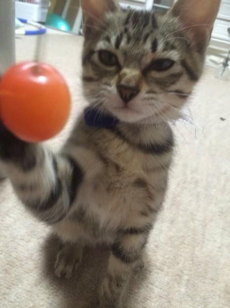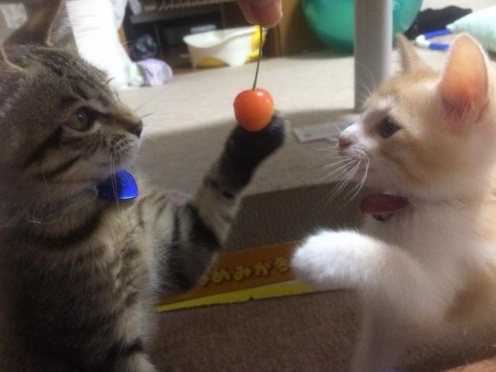 さくらんぼにじゃれるニャンコ🍒