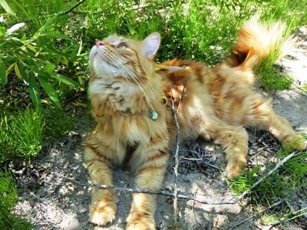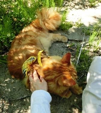 もう少しで川というところで、2ニャンとも腹ばいになってしまった。