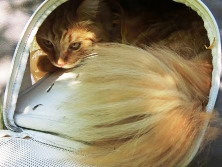 とキャリーの入り口を閉めかけたら、急にライア君が跳び出した!