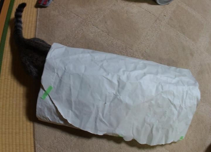お母ちゃんが、テープ貼って、トンネルにしてくれはったよ。