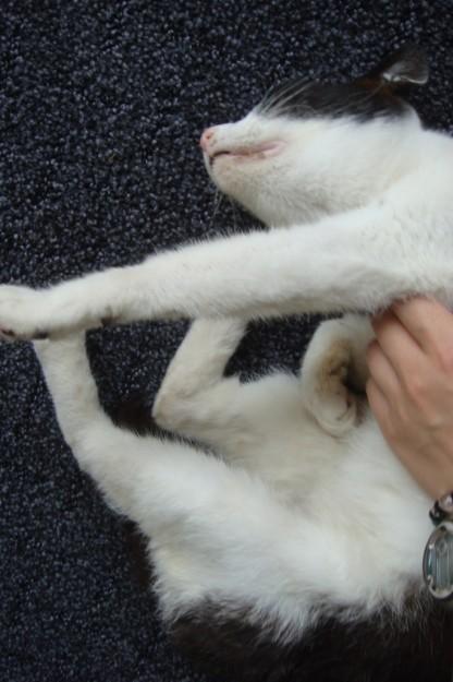 外で会うと逃げるのに、触り始めると恍惚の表情でふみふみ。