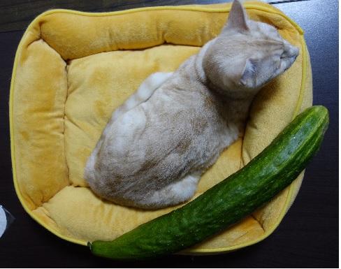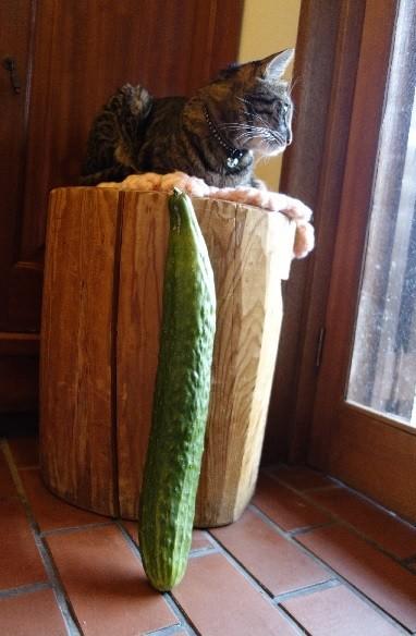 じーじが、種ができるほどデッカクなった胡瓜を輪切りにして