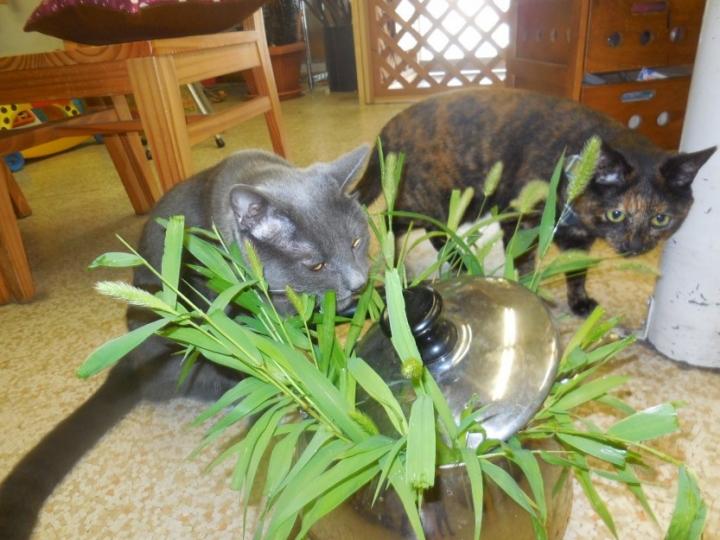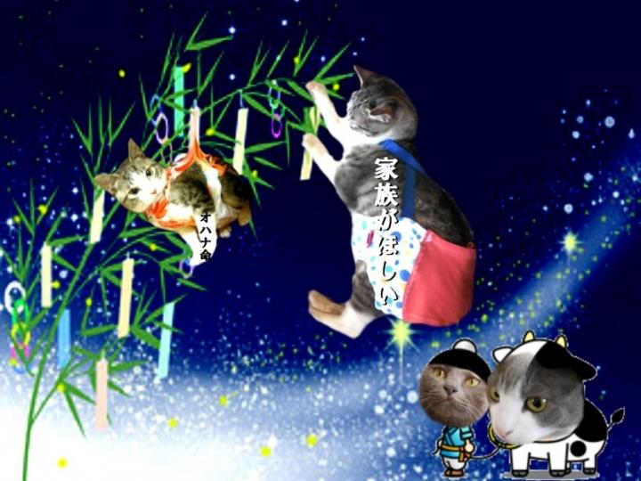 笹の飾りで「草~」と騒ぐニャンズに(-。-:)