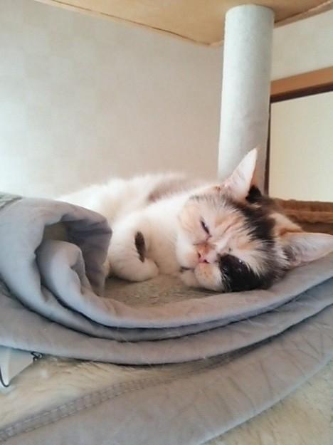 このク●暑い日でも、毛布で寝てる猫娘1号