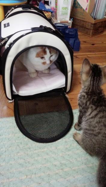 心配なのはふうすけ。子猫にビビり過ぎ…