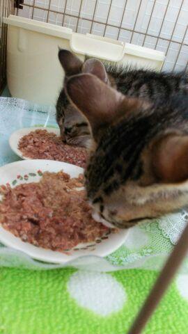 2匹とも良く食べ良く暴れゼンマイが切れたように寝ます(*^^*)