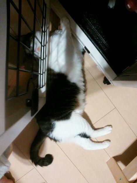 「そんなことより、とりあえずケージの下に入ったボールを自力でとれるようになりますように、だにゃ!」
