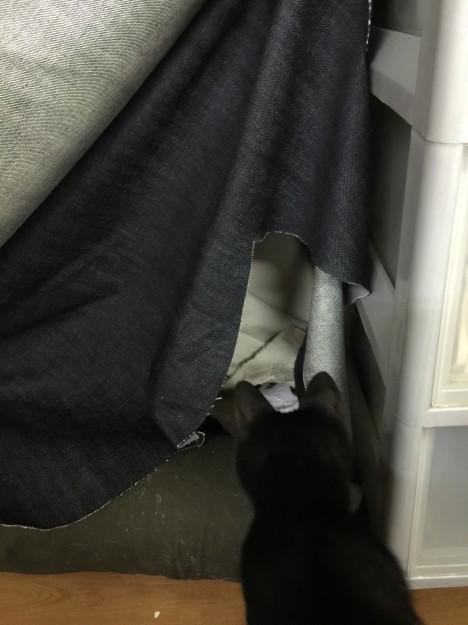 アトリエと30分ほどさがし反物のあいだの奥深に
