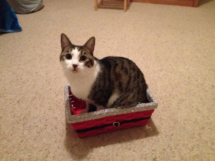 片づけでいろいろ捨てるのですが、このクリスマスな感じの箱?バスケット?は