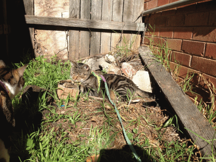 最近 こんな家の脇の狭いところで寝転がるのが気に入っているEuron君。